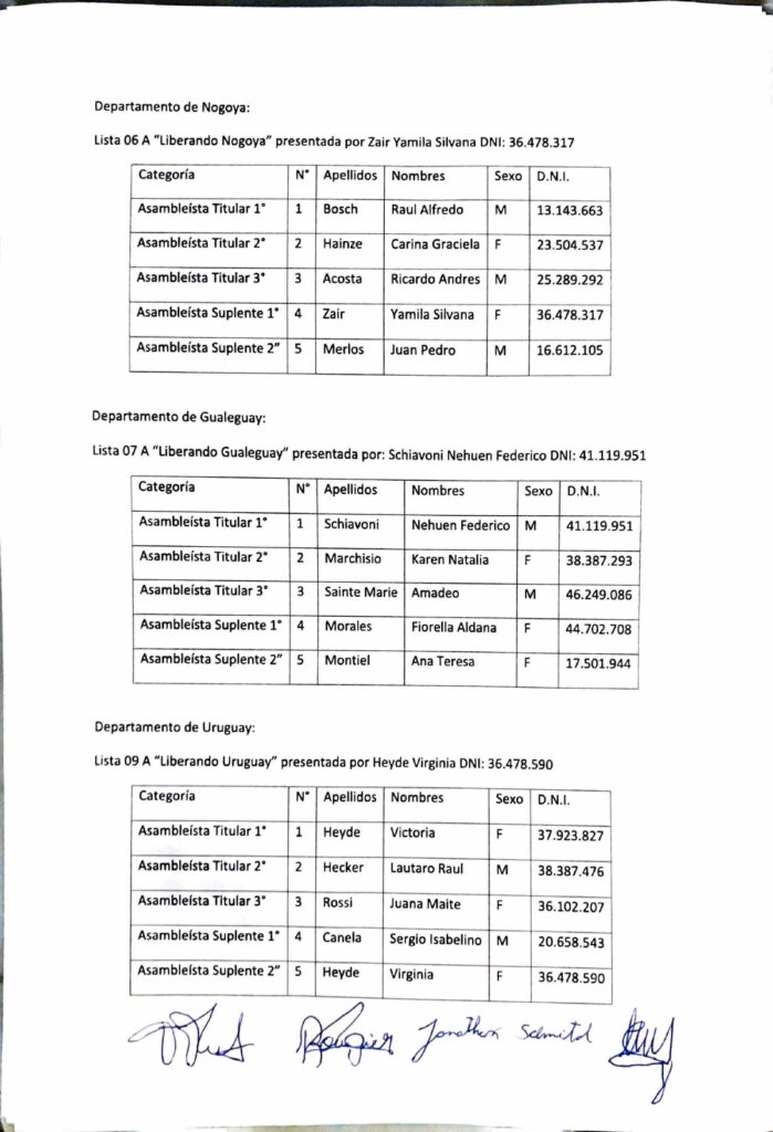 Oficializadas las listas la Junta Electoral Publicara la boleta única con las listas oficializadas para cada departamento las que serán acompañadas el día del acto electoral.
