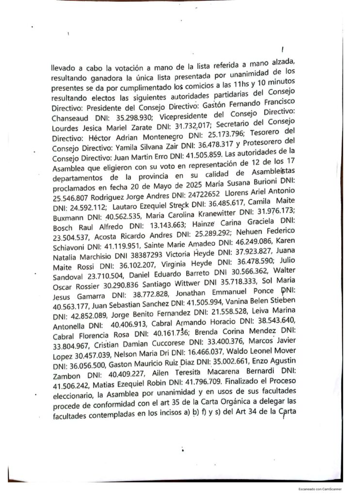 Acorde a lo estipulado en los artículos 25,26,31,34,65,68,72,73,74, 101 y 102 de la Carta Orgánica del partido, la Junta Promotora y la Junta Electoral convocan a elecciones partidarias de las Asamblea para el día 26 de Mayo de 2025 en el horario de 18 a 21 horas y del Consejo Directivo para el día 1 de junio de 2025 de 11 a 14 hs., a los efectos de a cubrir los cargos partidarios de cada órgano, dentro del plazos establecidos y en los domicilios aquí declarados.-