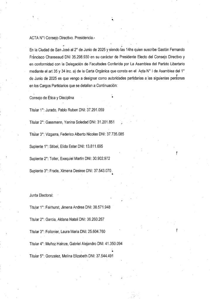 Con el acuerdo de la totalidad de la Junta Promotora del Partido Libertario y siguiendo lo lineado por nuestra carta orgánica, la Junta Electoral Resuelve: